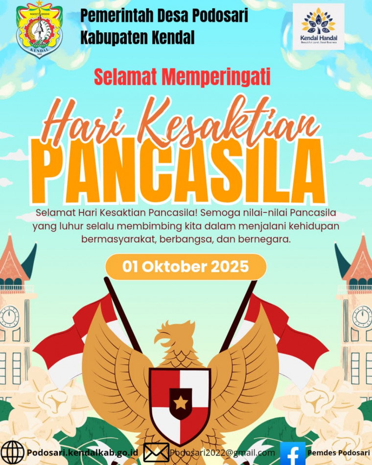 Podosari, 01 Oktober 2025, Pemerintah Desa Podosari menyampaikan Selamat Memperingati Hari Kesaktian Pancasila.